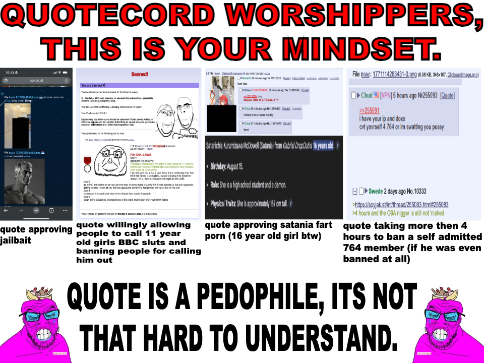 Babylonklutzzz about 13 hours ago [hidden] Didn’t we vote to stop talking about soysphere drama doe?Either way what Quote did to the sharty makes me ANGRYturned it into namefag niggerhell. 2 Reply Copy ID Copy Link