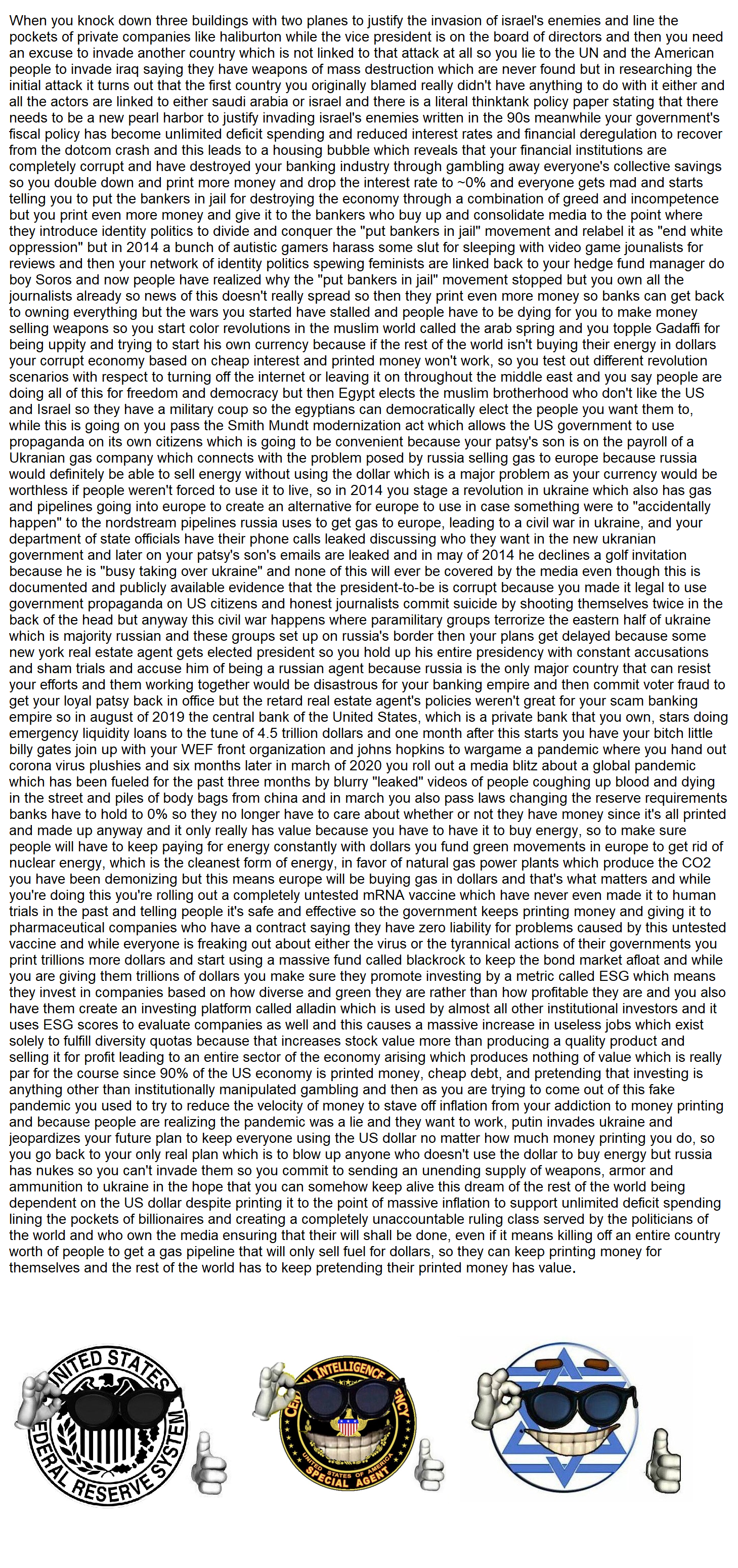 True although the 08 crisis was because of Carter in 76 making it easier to mortgage homes, then clinton/ bush started pushing these cheap loans to minorities (like niggers and latinx) and they ... they couldn't pay it back. So blame shameless opportunistic bankers (fyi iceland is the only country to arrest them) and diversity